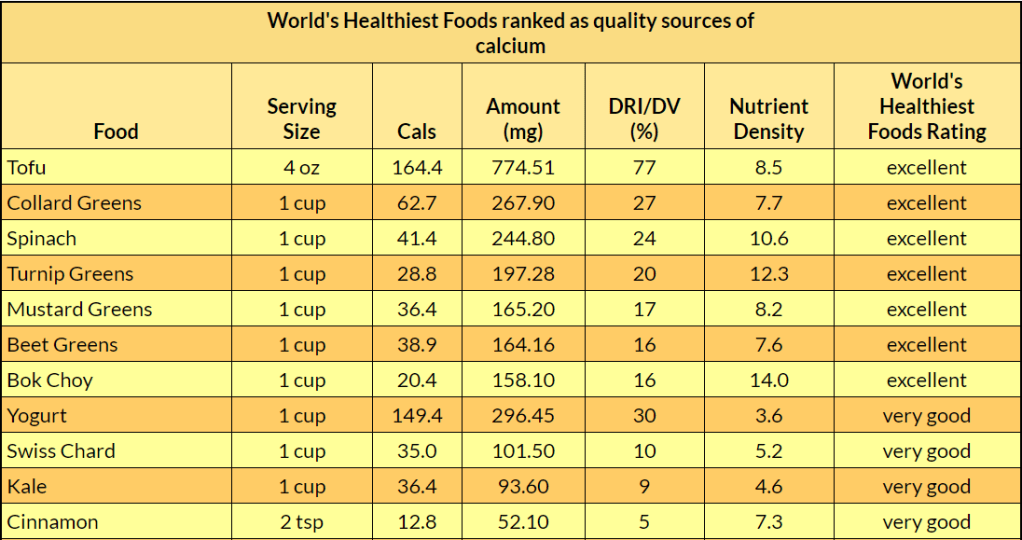 - 100 calories worth of spinach provides you with twice as much calcium as 100 calories worth of yogurt